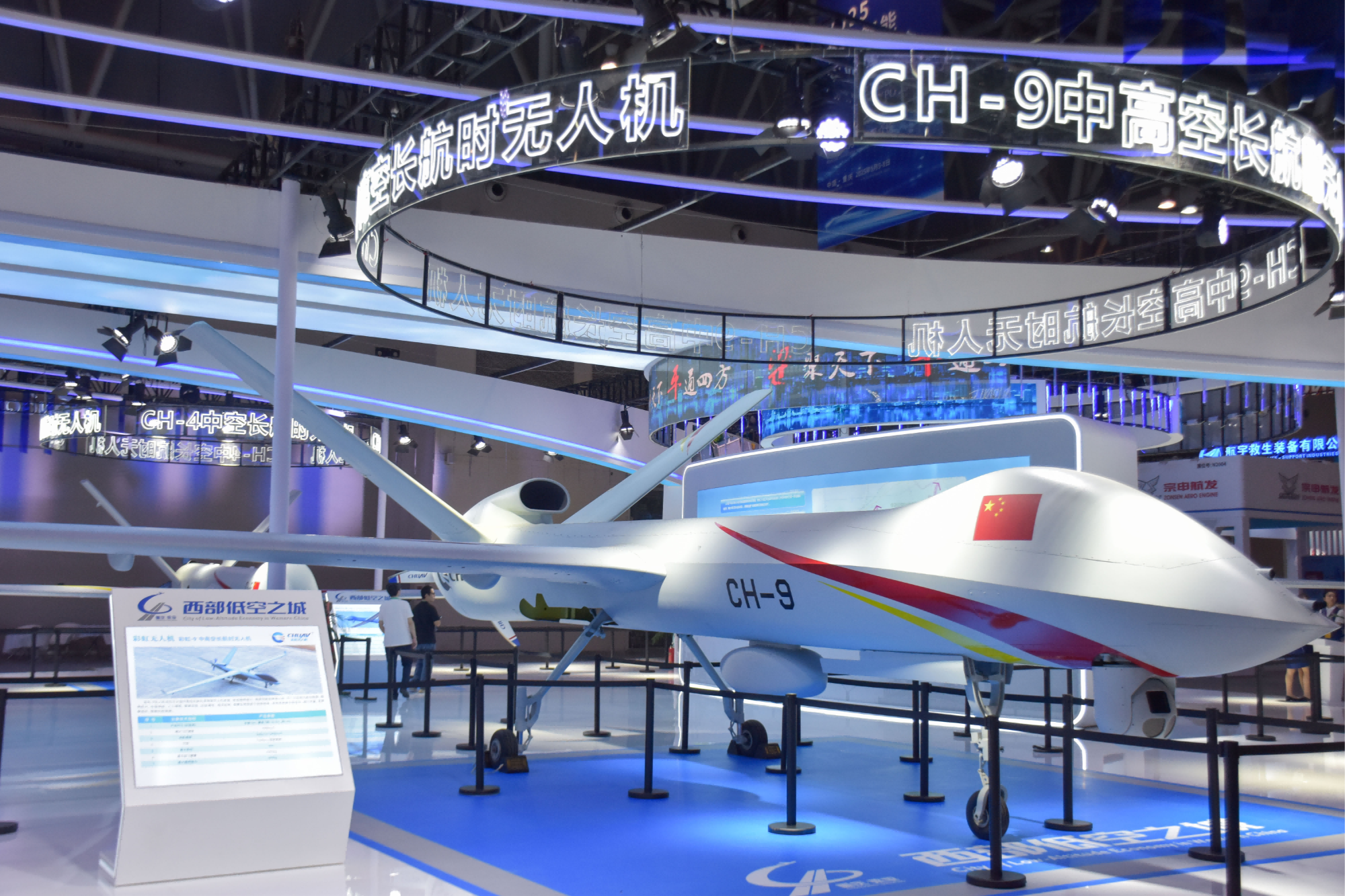 彩虹﹣9无人机定位于大型中高空长航时多用处无人机(央广网发 张静茹 摄)来自浙江的不雅众杨先生正在大疆运载无人机前细心扣问,